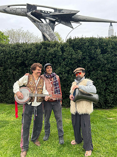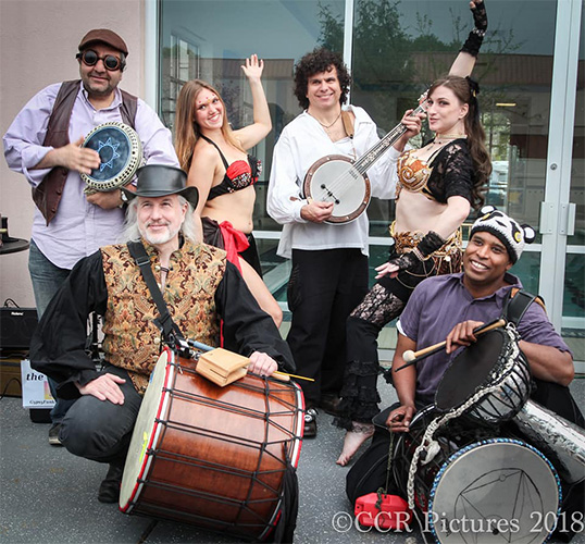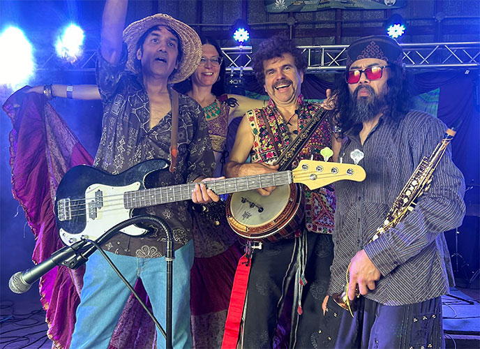 I invite you to experience Gypsy Funk Squad, a band that's basically a party on legs and travels in a cool van, illuminating the East Coast Woodlands, nearby big cities (if they're lucky!) and small towns, with their ridiculously fun and multicultural musical experience, blending international sounds infused with the soulful wail of the dumbek, resonating tambourines, dancing colored scarves, and devotional songs that uplift the soul, all while making you laugh and dance like a crazy person. This ensemble offers a diverse repertoire, including otherworldly spirituals and fun pop covers disguised as otherworldly spirituals, that inspire and delight, and their eclectic style is like something straight out of a comic book, think Josie and the Pussycats and Scooby Doo's crew, but instead of solving mysteries, they spread inner joy and harmony through their artistry, and trust us, it's a real thing.